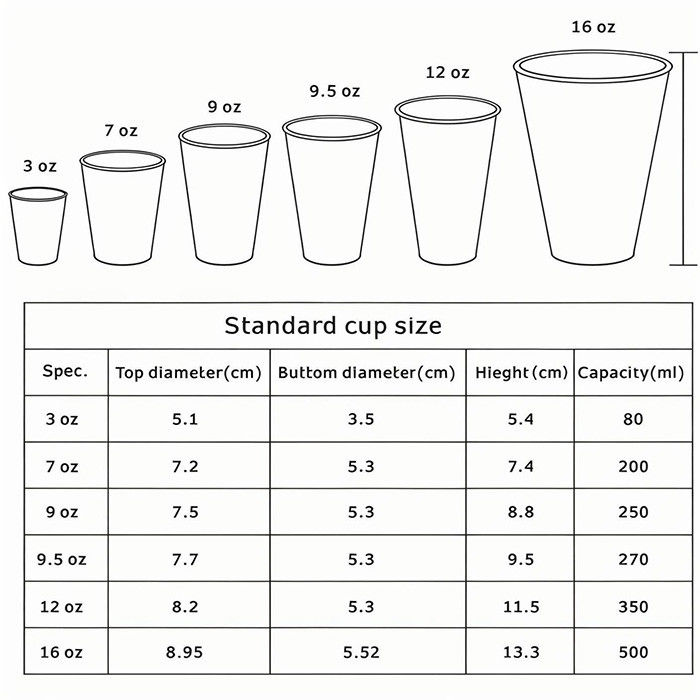 | حجم الكأس | < 16 أوقية |